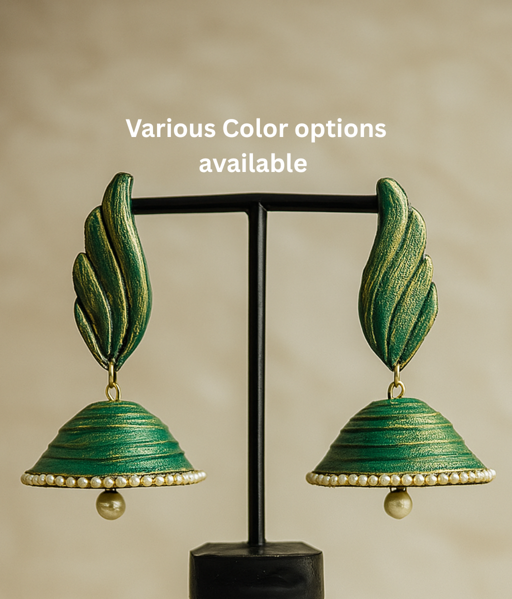 Feather Jhumka in Golden Pearl || Size: 9cm*5cm*5cm