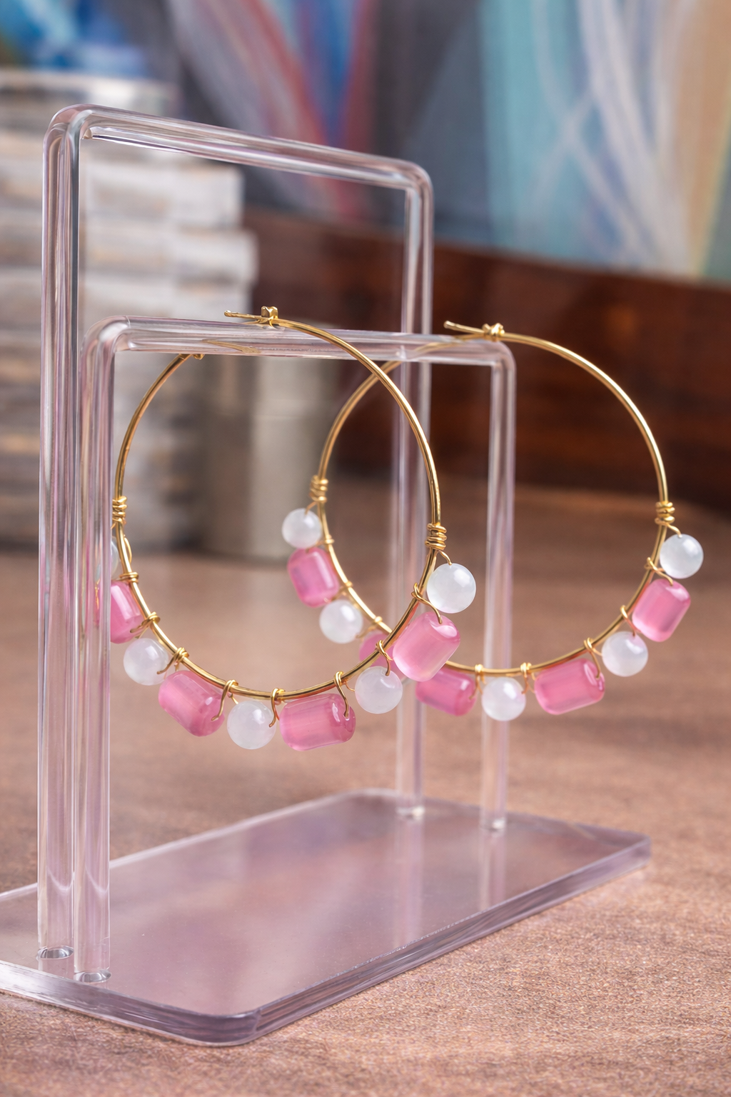 Monalisa Pink and White Stones Loop and Hoop Earrings