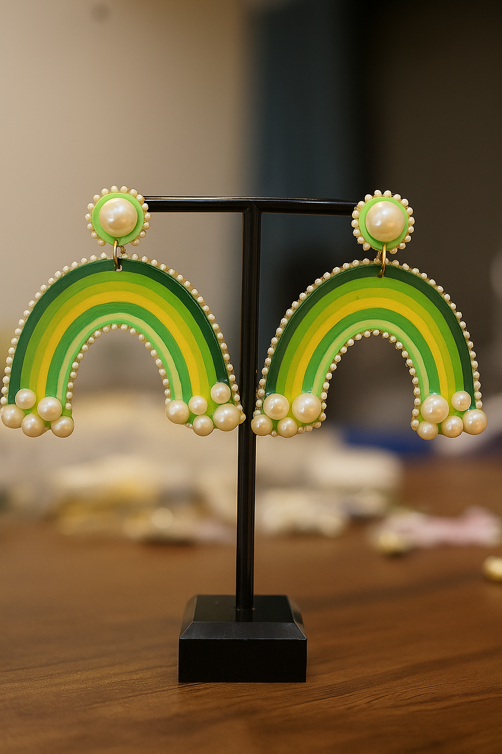 Rainbow Pearl Earrings Signature Design – Green || Size: 7cm*7cm*1cm